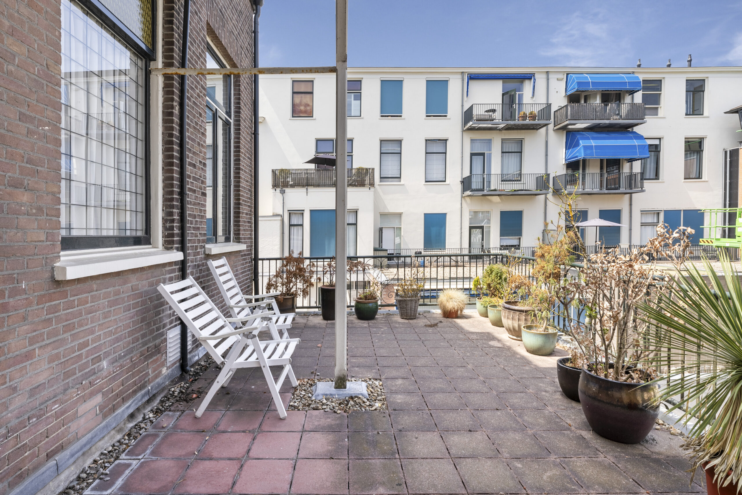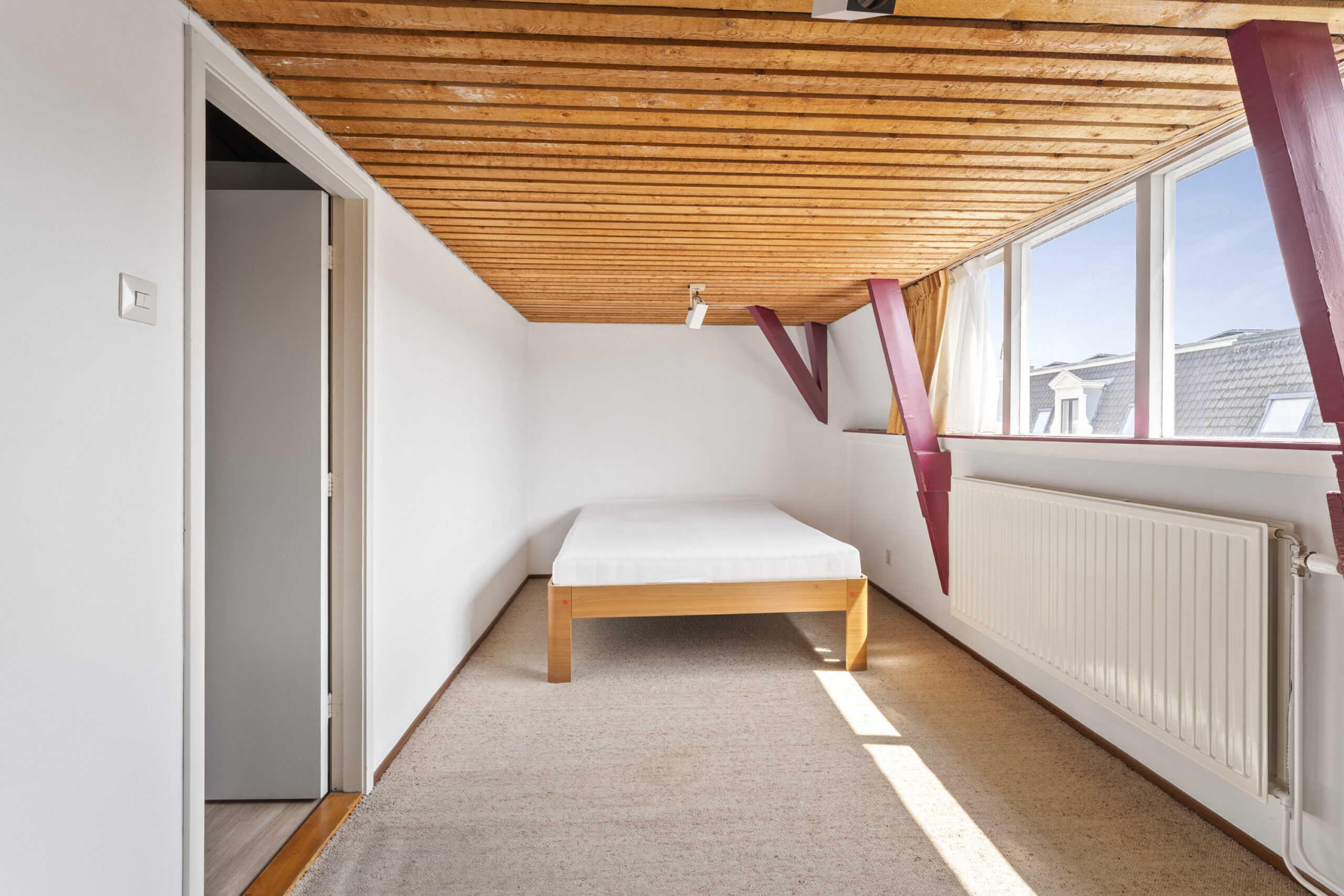 Via de openslaande deuren in de woonkamer loop je zo het dakterras op van circa 27 m²: een heerlijke plek om te borrelen, te tuinieren of gewoon te ontspannen. Verder vind je op de eerste verdieping nog een kleine voorkamer met een prachtig plafond met sierornament – perfect als werkkamer of hobbyruimte.
