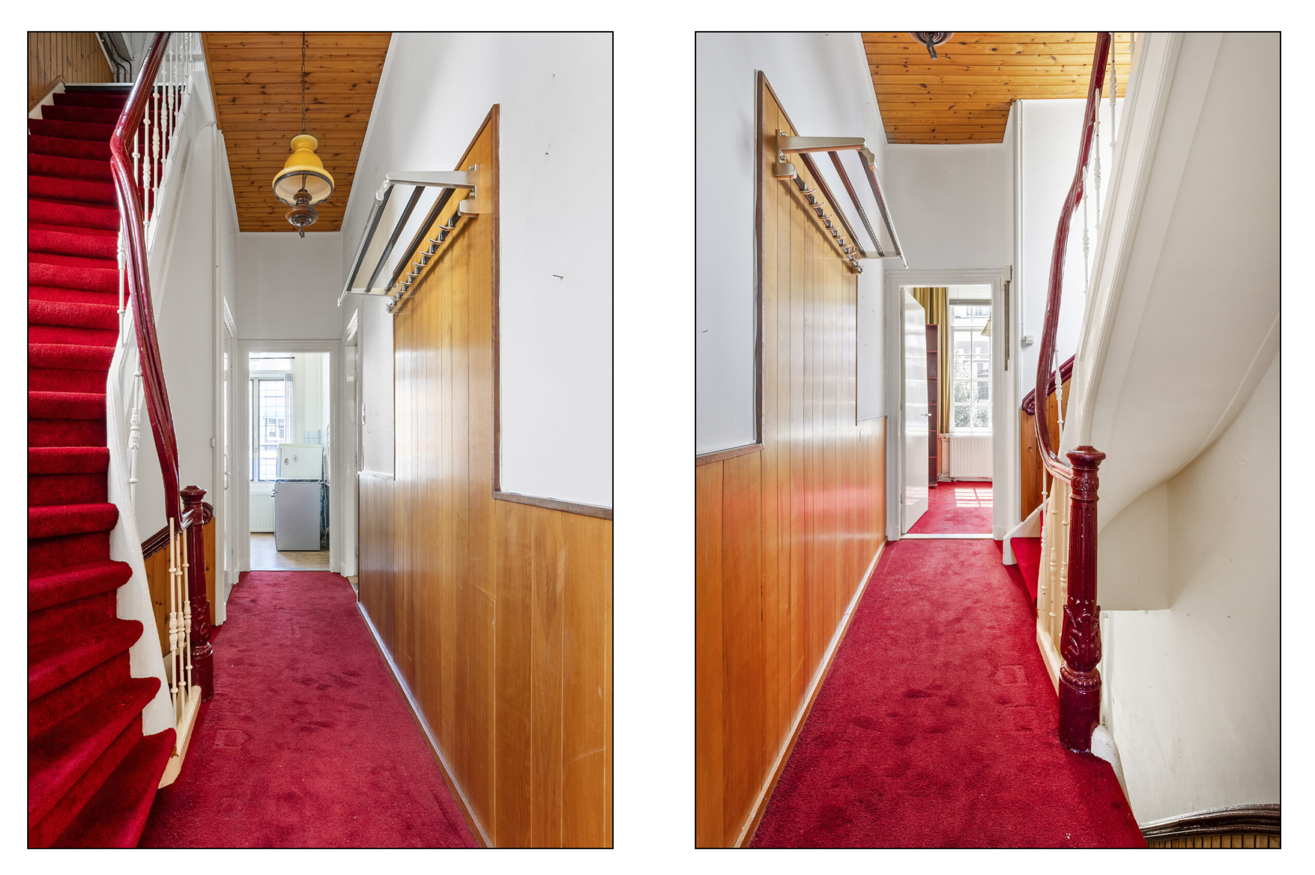 • Prachtige oude details zoals een plafondornament, versierde trapleuning en balustrade en glas in lood