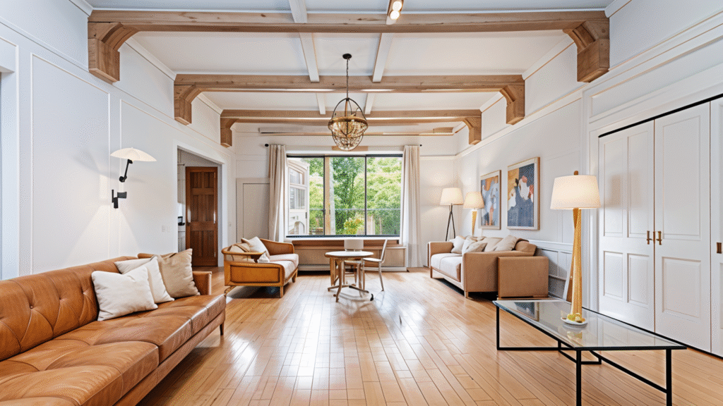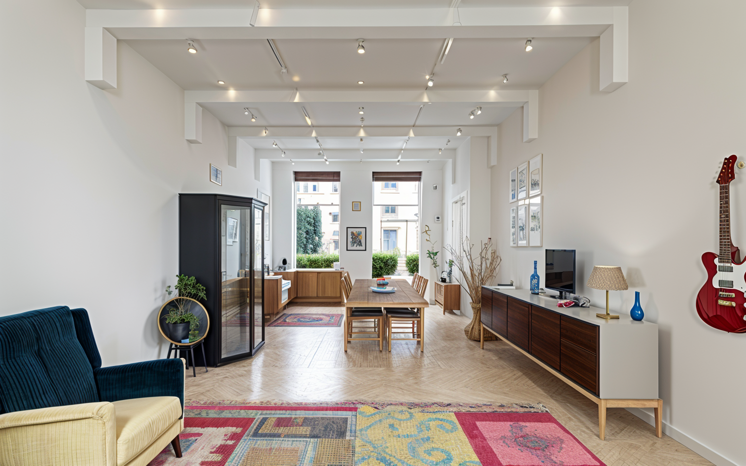 You’ll live here on a quiet street, yet be in the heart of the bustling city center within minutes. Ideal if you love the city but also appreciate peace and quiet. The apartment itself is surprisingly spacious and bright, with the absolute highlight being the generous living room on the first floor. Thanks to its height and large windows, natural light floods in beautifully.