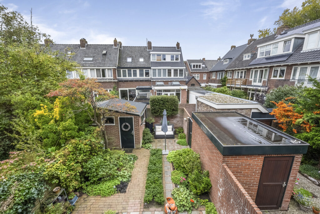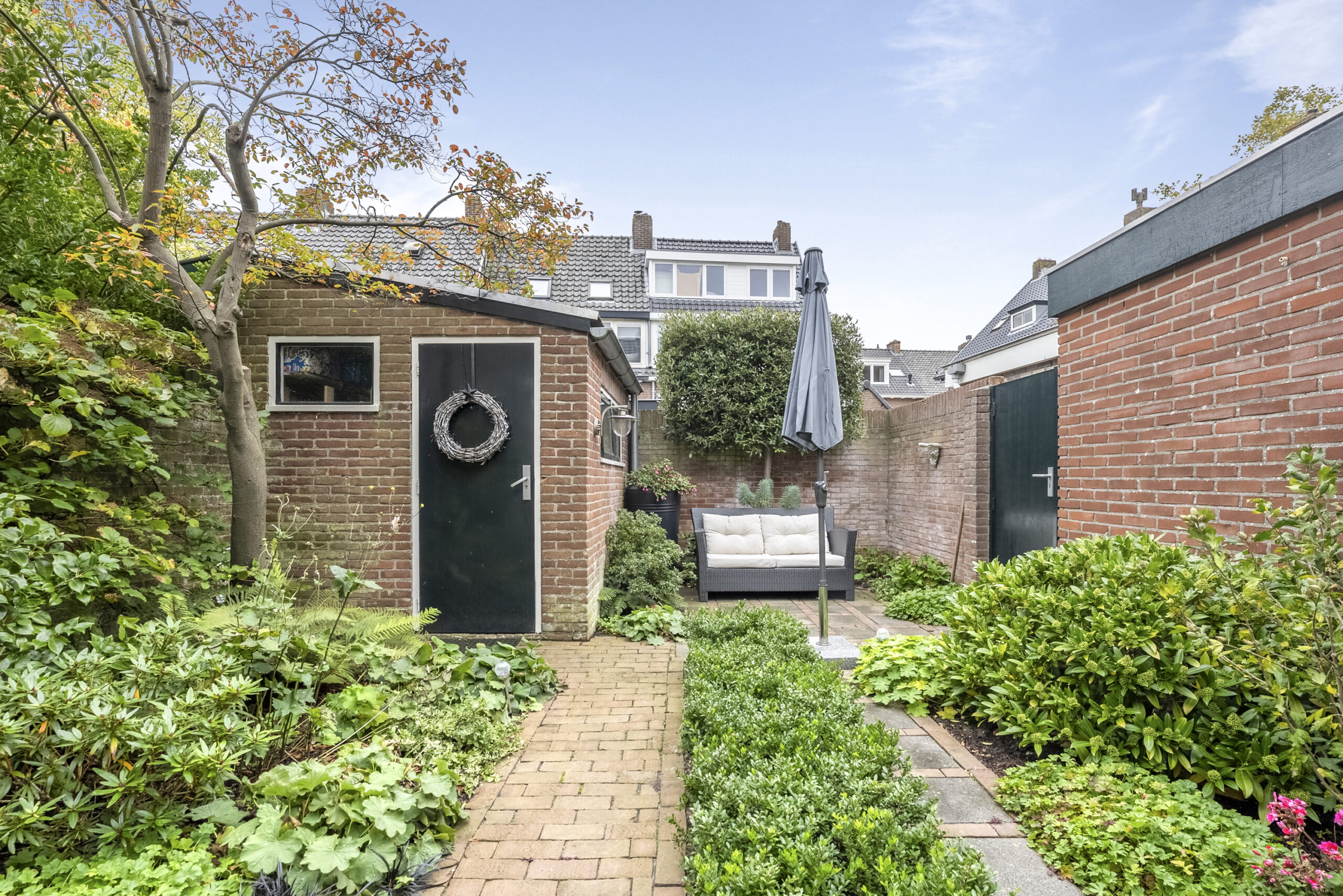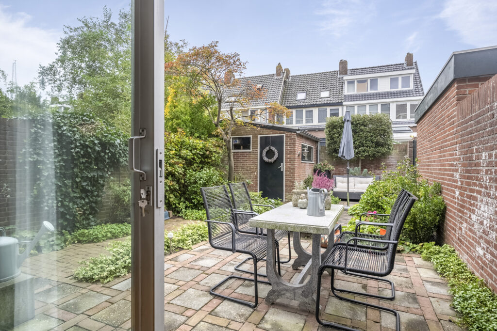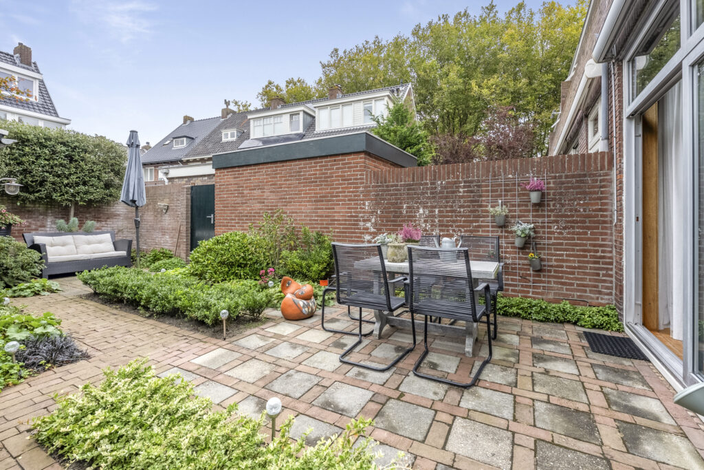 De zonnige, fraai aangelegde achtertuin op het westen biedt volop ruimte om te genieten van het buitenleven. Dankzij de diepte en breedte van de tuin is er plek genoeg voor een loungehoek, eettafel en een speelplek voor kinderen. De vrijstaande stenen schuur is ideaal voor fietsen, tuingereedschap of een hobbyruimte, en via de achterom is de tuin ook praktisch bereikbaar.