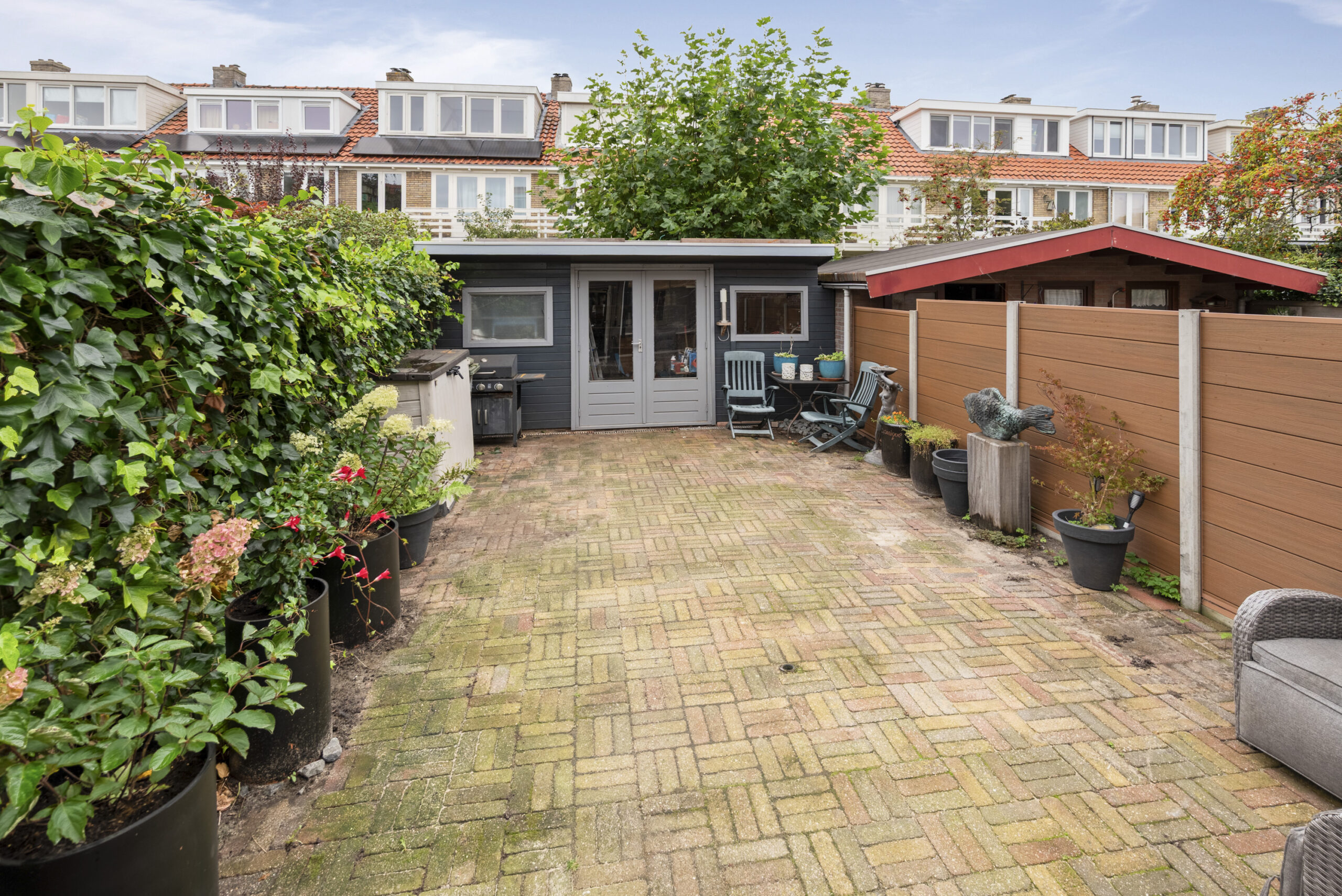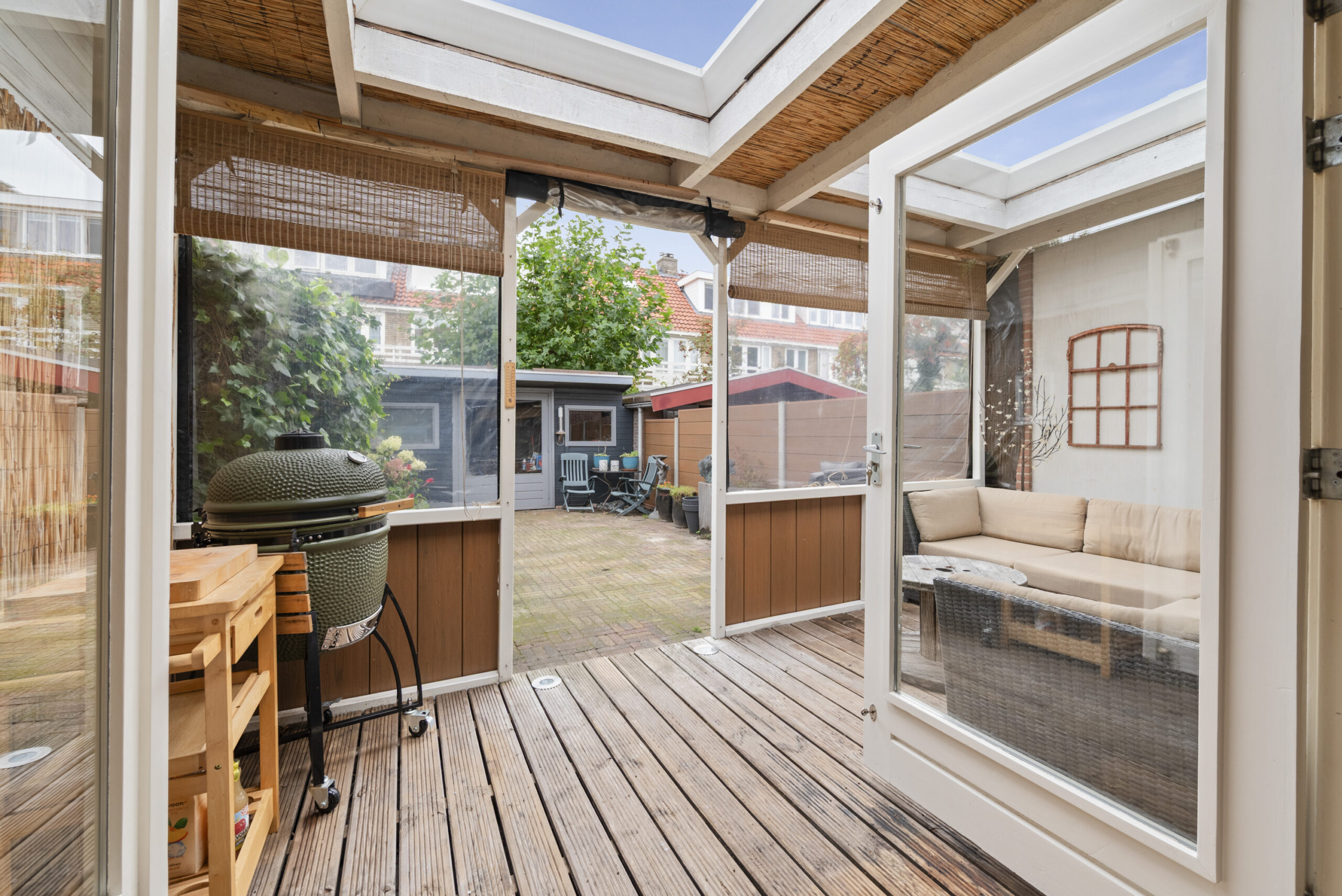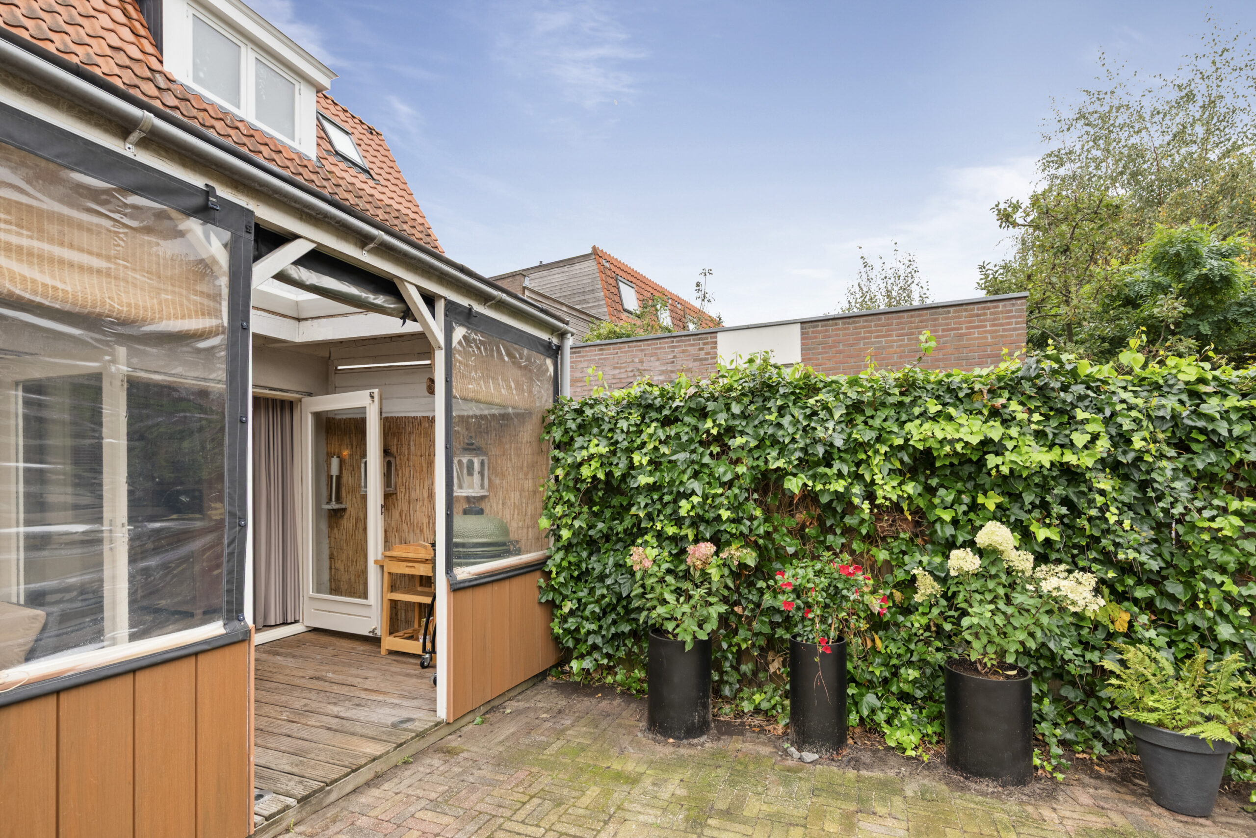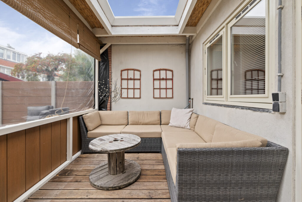 De diepe achtertuin ligt op het westen, waardoor je hier heerlijk van de middag- en avondzon kunt genieten. De gezellige veranda biedt een knus plekje om het hele jaar door van het buitenleven te profiteren. Achter in de tuin staat een grote schuur met achterom – ideaal voor fietsen, opslag of hobby’s.