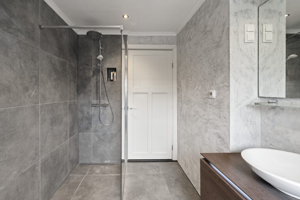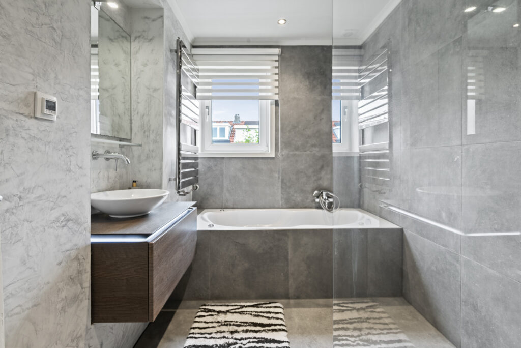 • Grote badkamer met inloopdouche, ligbad, wastafel en vloerverwarming