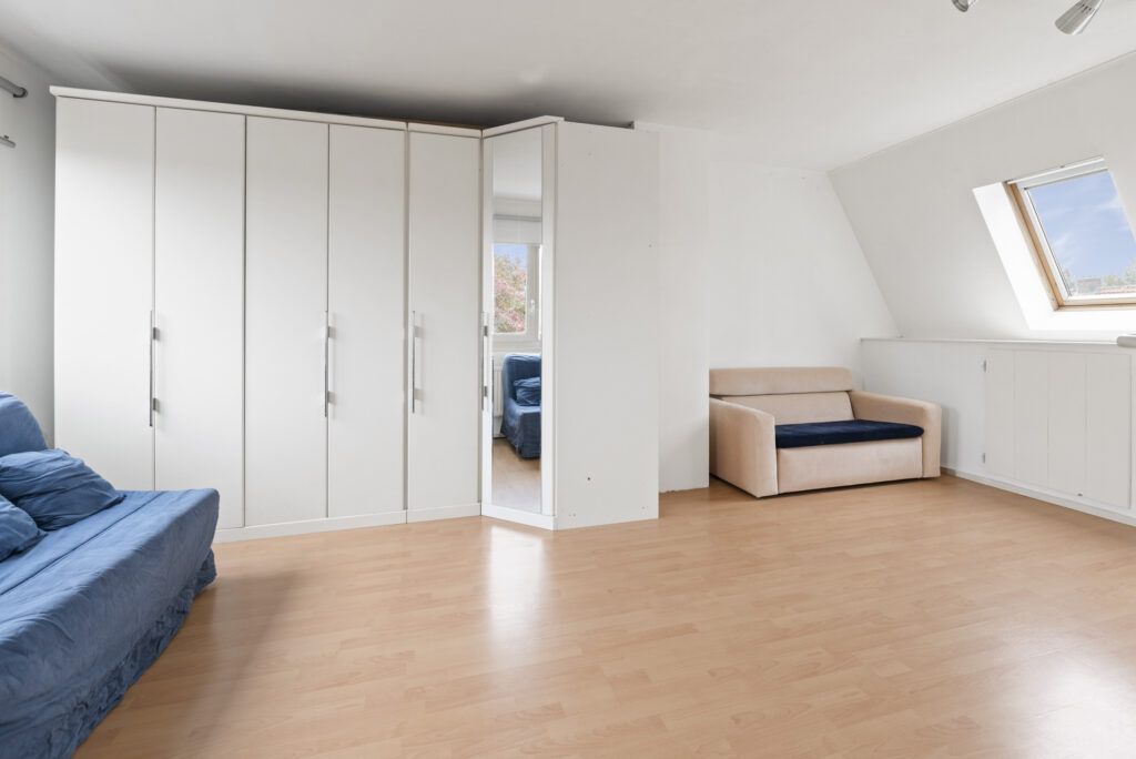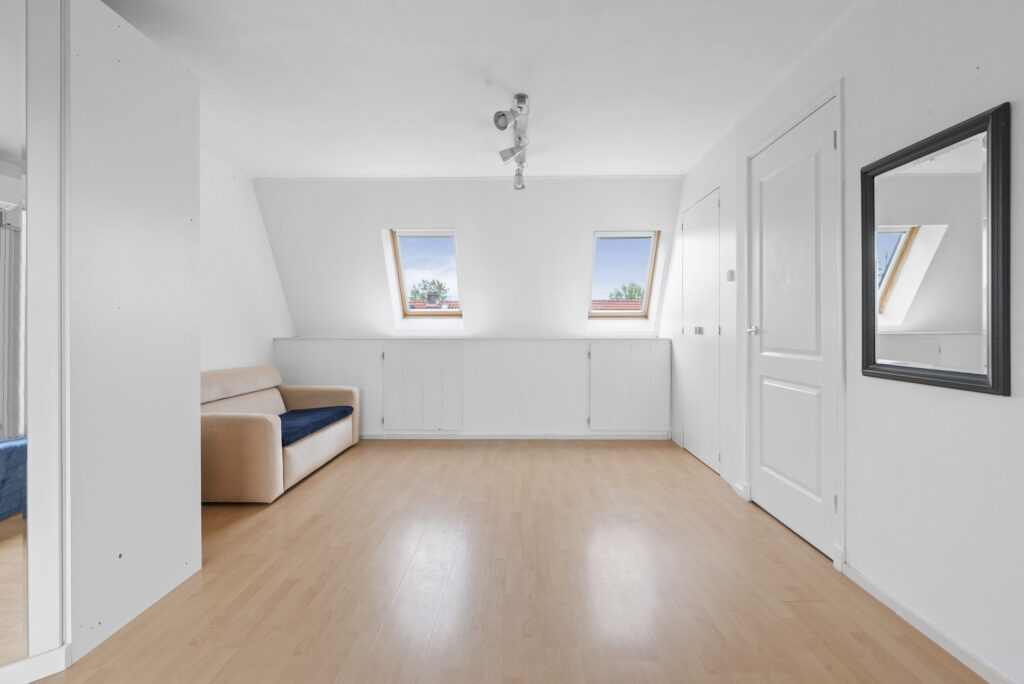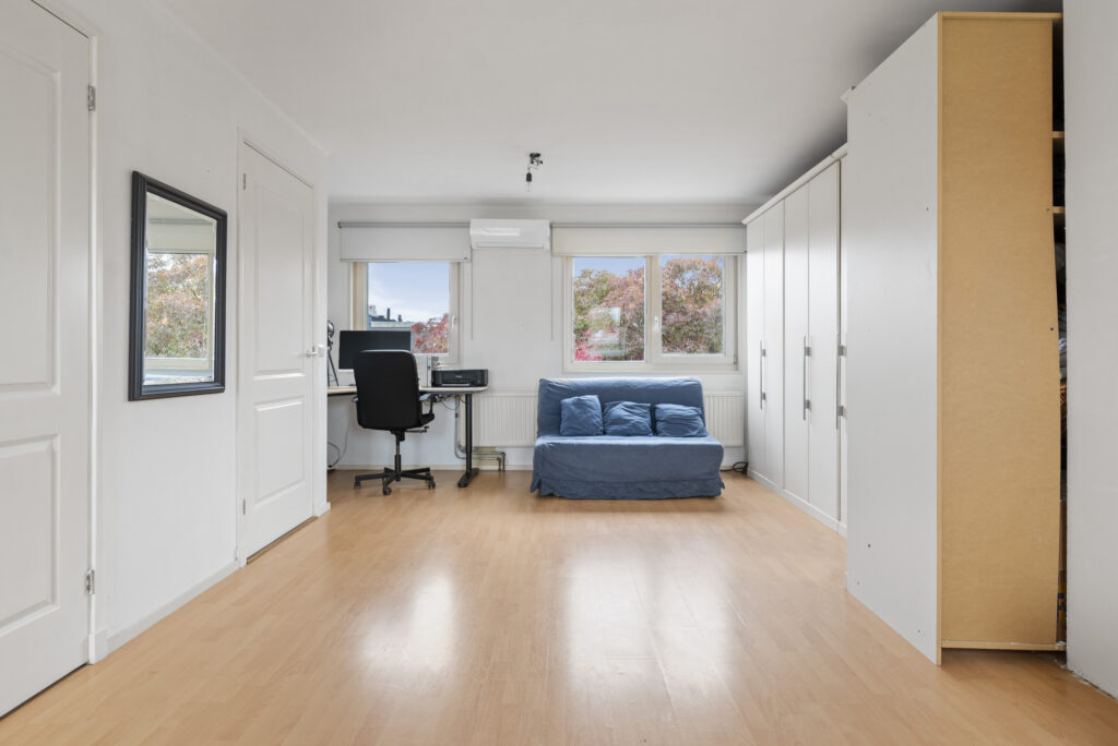 De tweede verdieping bestaat uit één grote, lichte kamer. Deze ruimte kan desgewenst worden opgedeeld in twee aparte slaapkamers, afhankelijk van je woonwensen.
