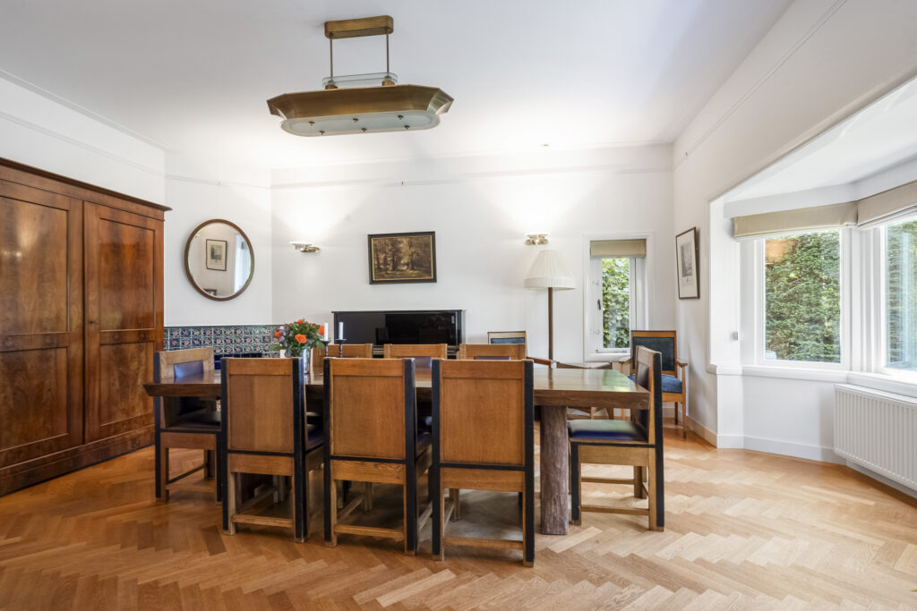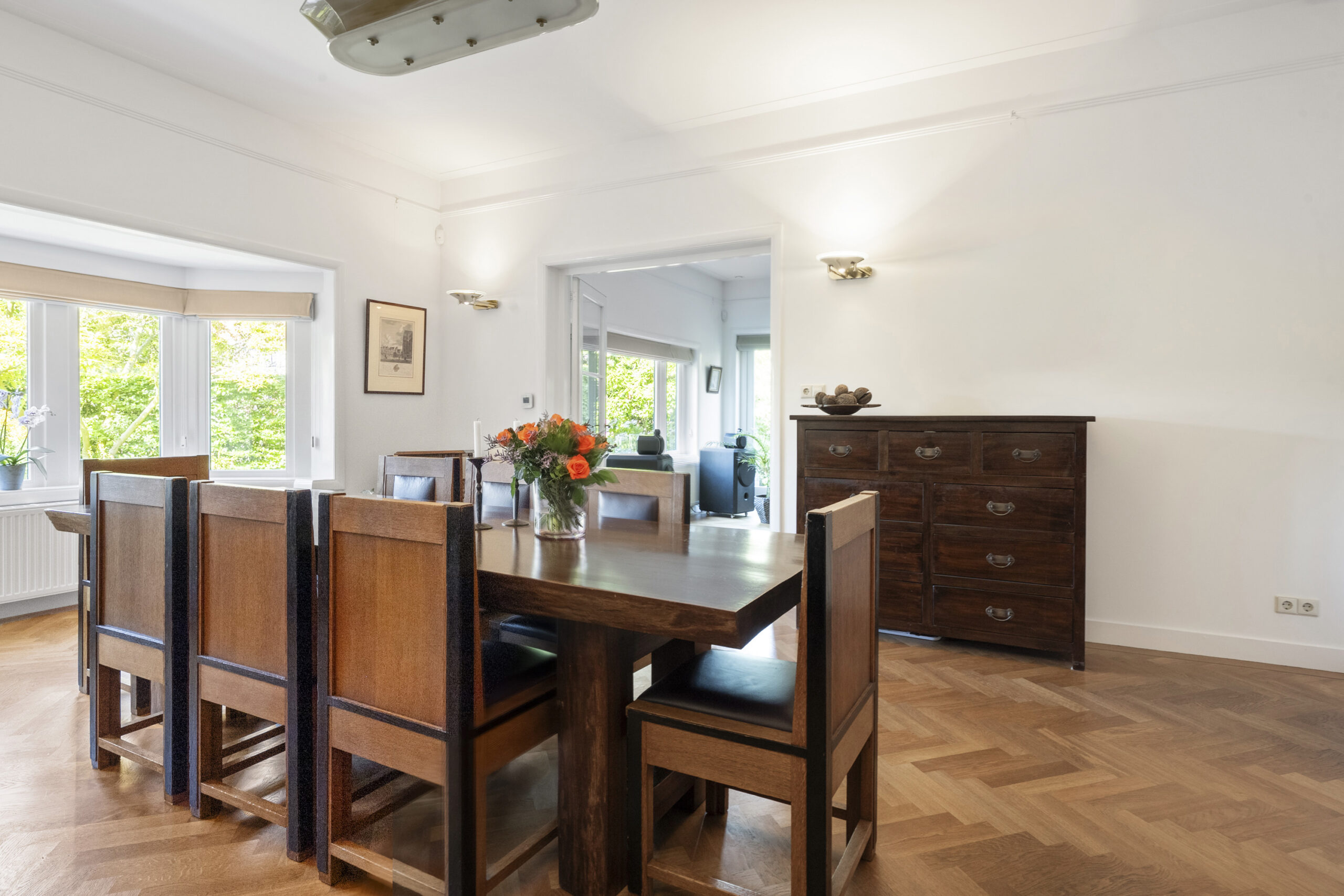 The house was designed in 1922 by Andries de Maaker, the architect also known for Huis Leyduin in Vogelenzang and the Eerste Christelijk Lyceum in Haarlem. The layout of the living space on the ground floor is original, with the living and dining room next to each other, creating a beautiful spatial effect and plenty of natural light throughout the day.