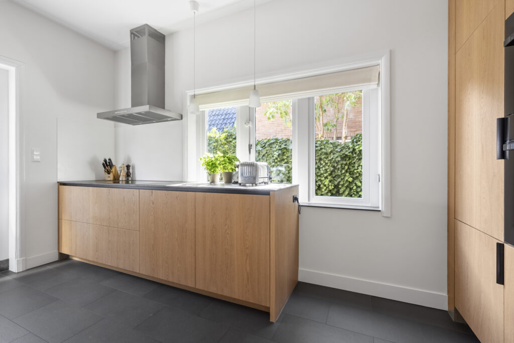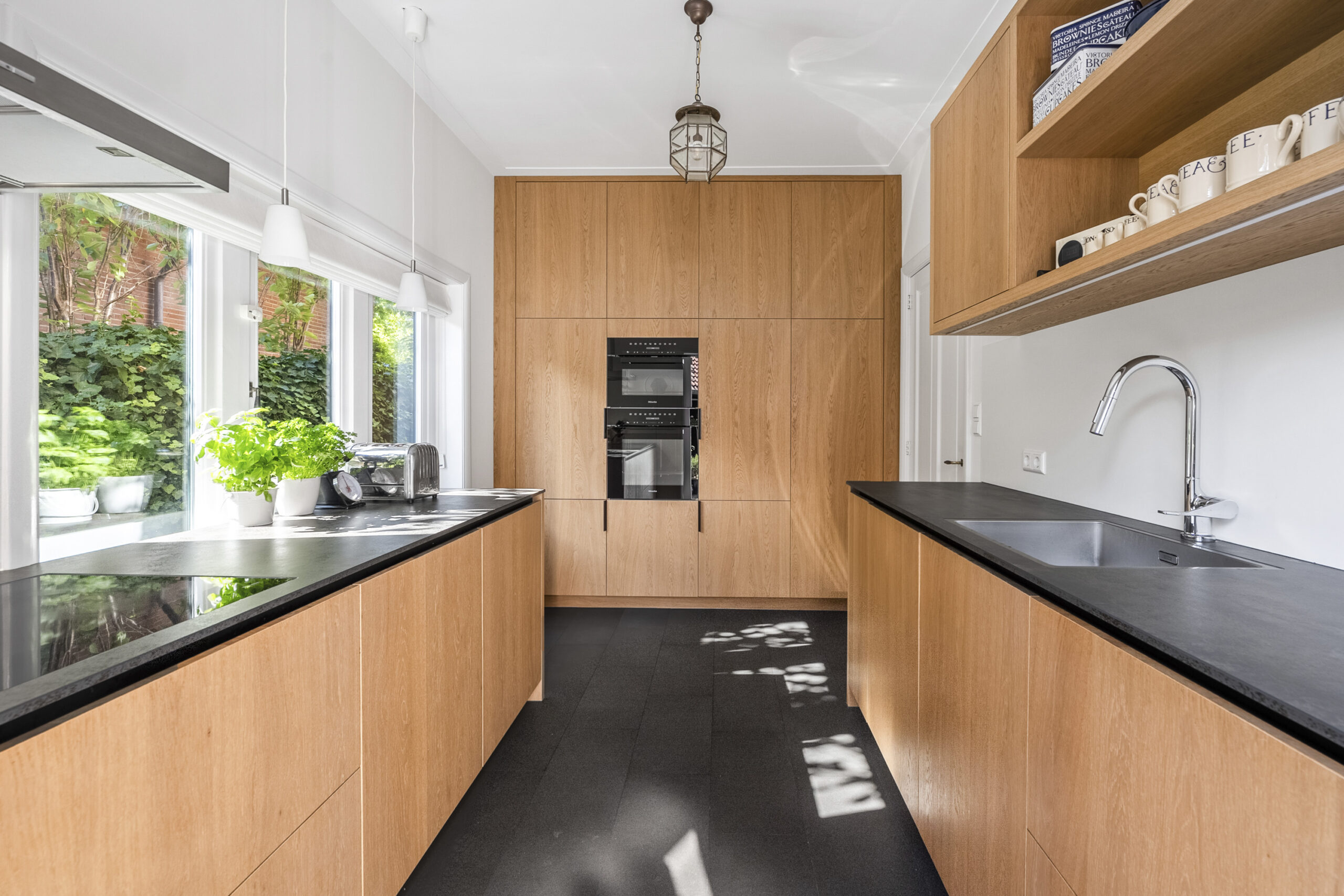 • Luxe eiken maatwerk keuken uit 2022 met Miele apparatuur en vloerverwarming