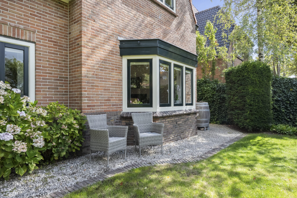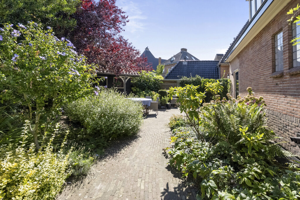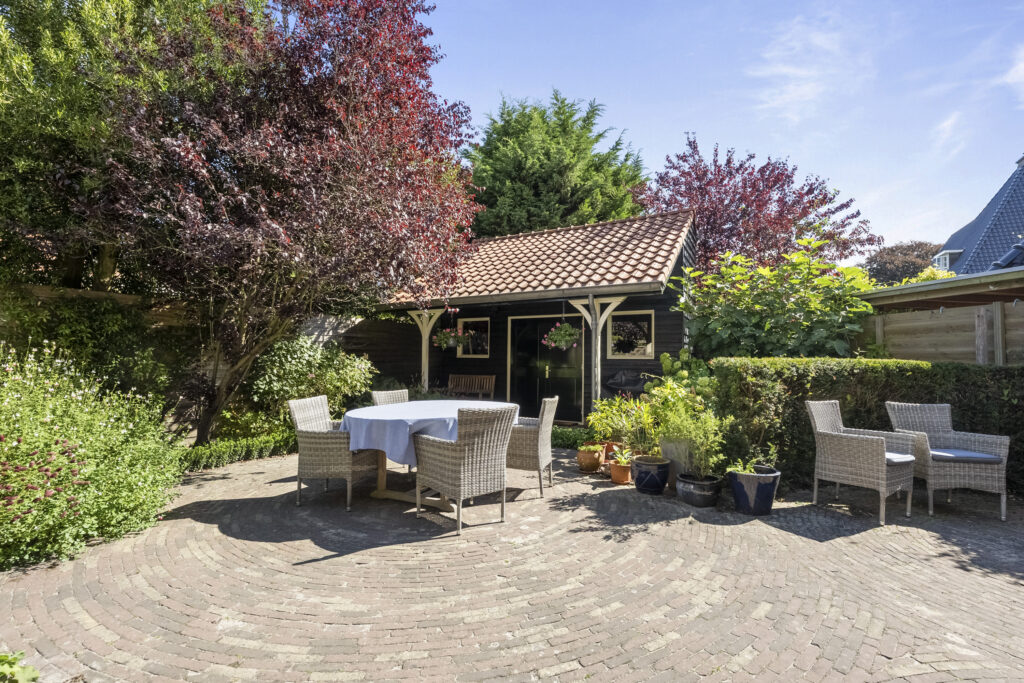 Tuinliefhebbers met groene vingers kunnen hun hart ophalen in de rondom gelegen mooi aangelegde tuin. Deze biedt veel privacy en veel ruimte waar je op alle momenten van de dag van de zon en/of schaduw kunt genieten of kinderen kunnen spelen. Op de oprit aan de voorzijde is plek om 2 auto’s te parkeren op eigen terrein. Het charmante vrijstaande tuinhuis met vliering biedt volop praktische berg- en hobbyruimte.