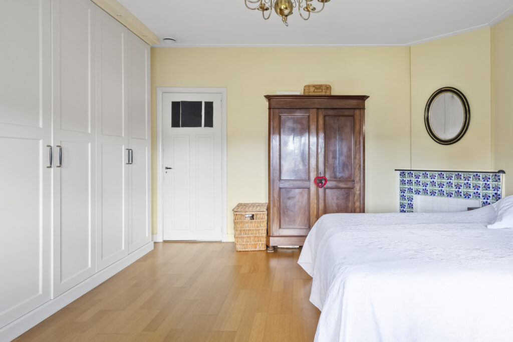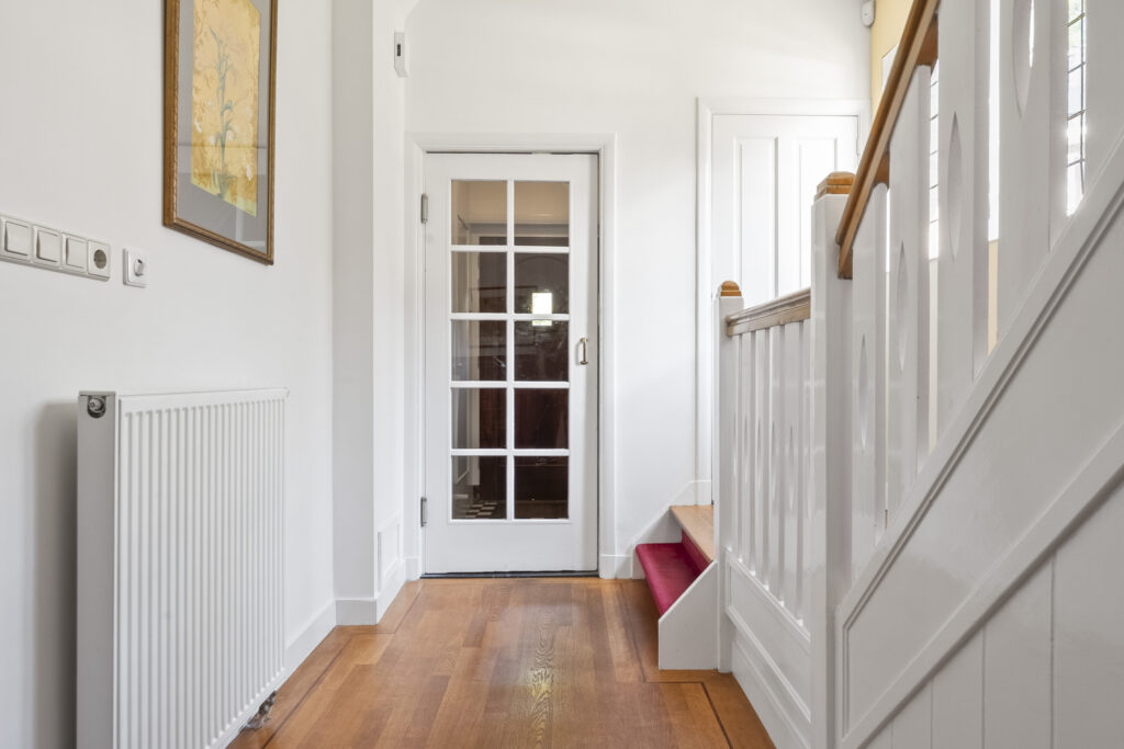 This charming family home radiates warmth and attention to detail due to, among other things, the bright hall with staircase, stained glass windows, panel doors, classic tiling, high-quality materials, herringbone parquet flooring, 3 bay windows and a new bespoke kitchen and luxury bathroom. Spread across the floors are 5 bedrooms and 2 bathrooms. There is ample storage space thanks to various built-in wardrobes, the loft and the cellar. The garden house with attic storage has a charming appearance and offers plenty of space.