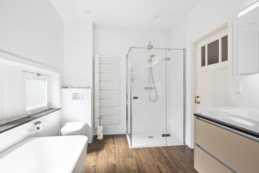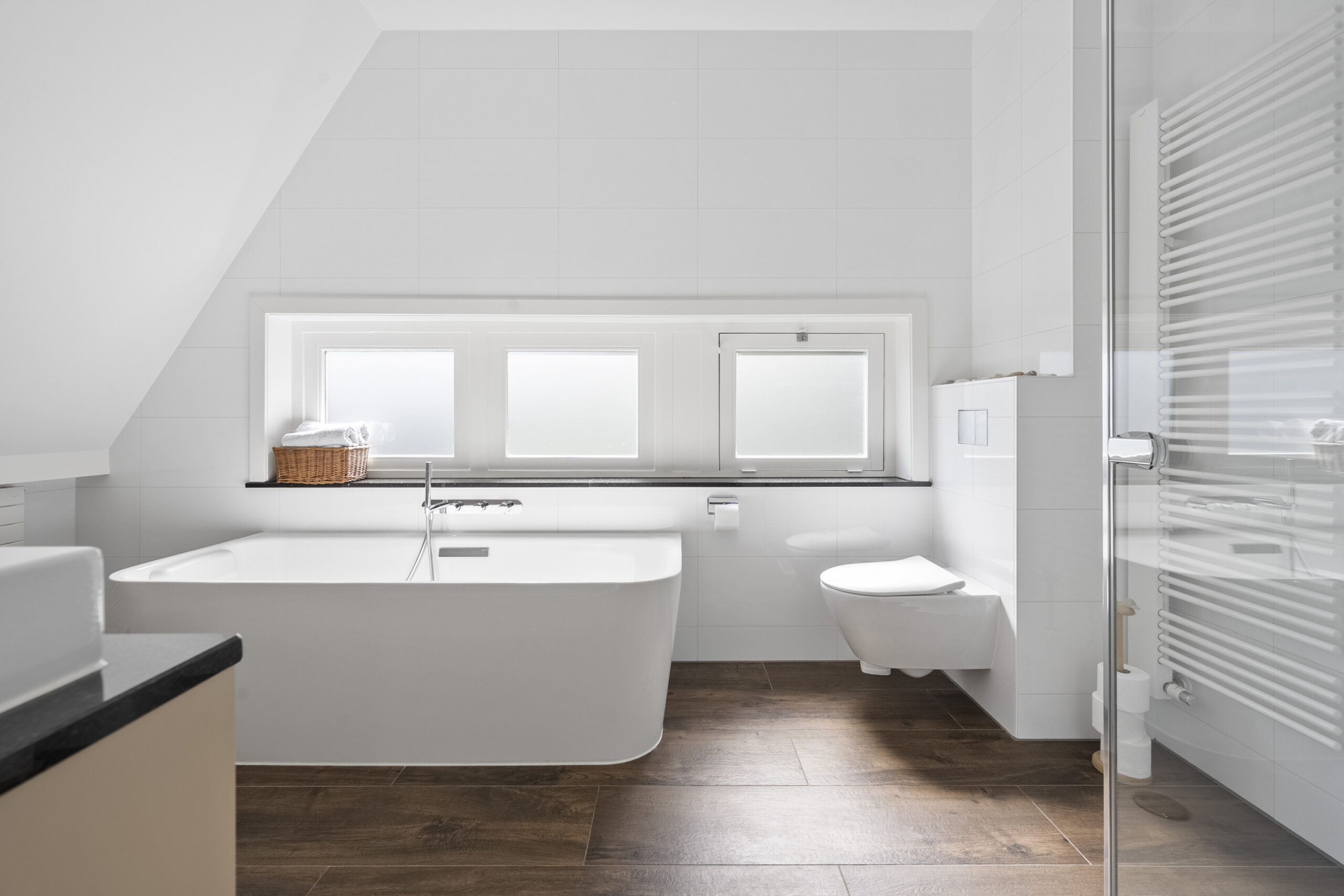 • Bathroom from 2017 with marble and Bette sanitary ware and a second bathroom