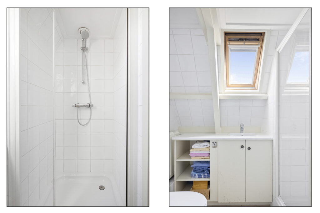 Via een vaste trap bereik je de tweede verdieping. Hier zijn nog eens 2 ruime slaapkamers en tweede badkamer met wastafelmeubel, douche en derde toilet. Tot slot is er op de bevloerde vliering volop bergruimte.