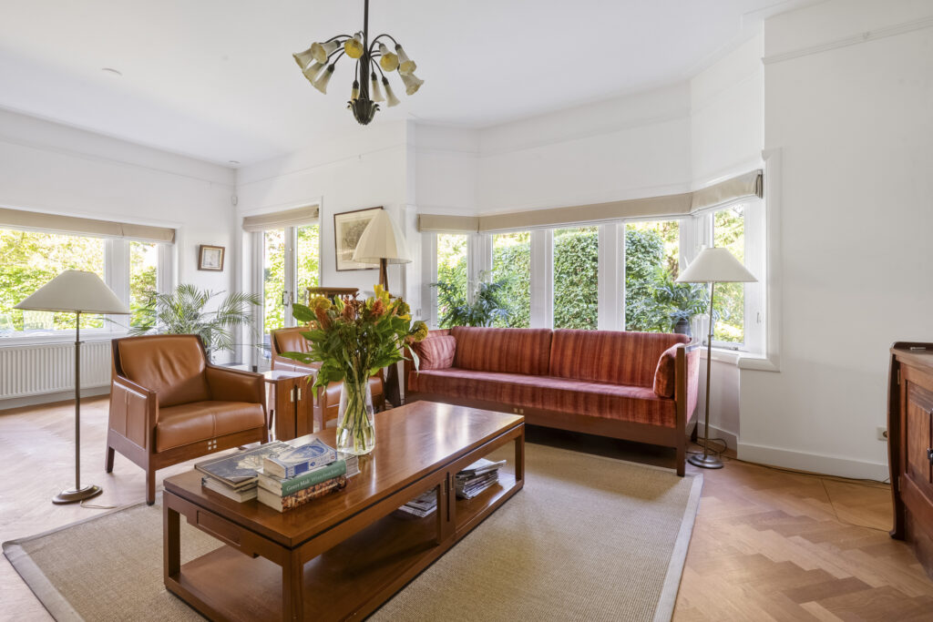 • Royale sfeervolle woonkamer en suite met houten visgraatparket (2001) en 2 erkers