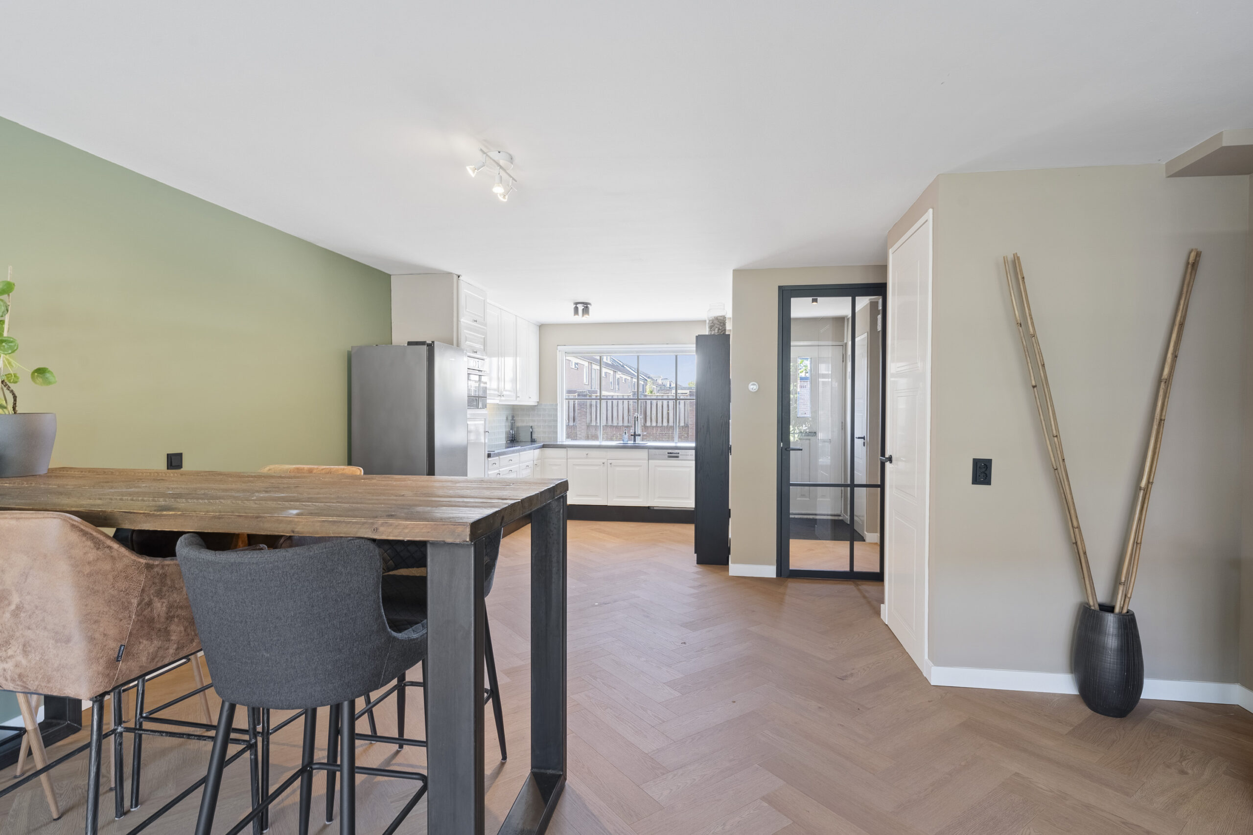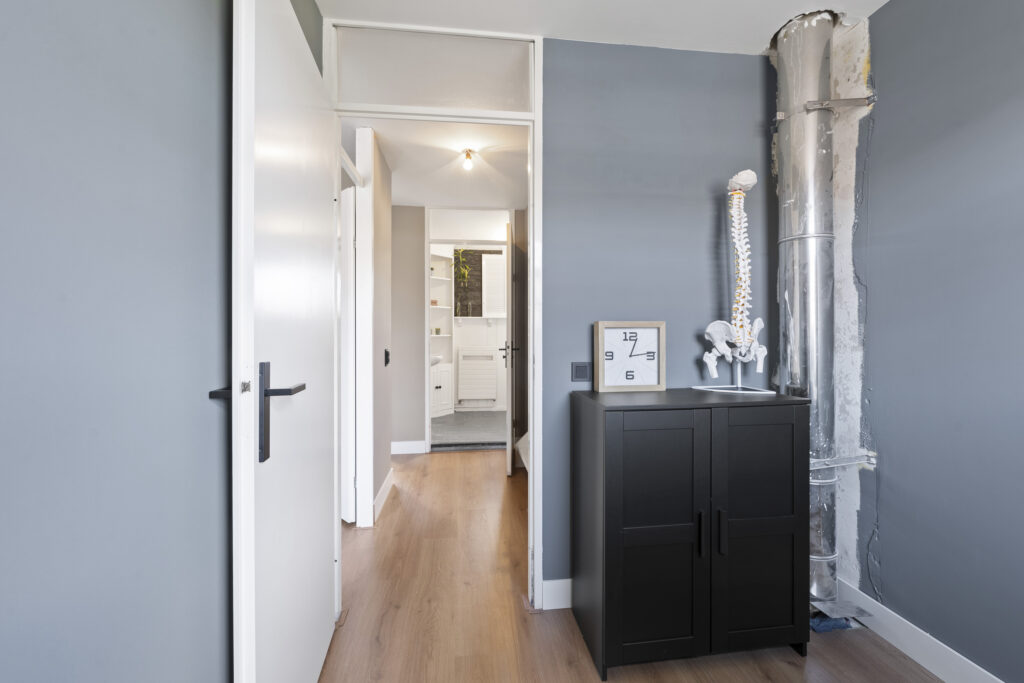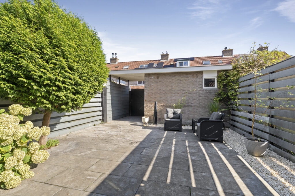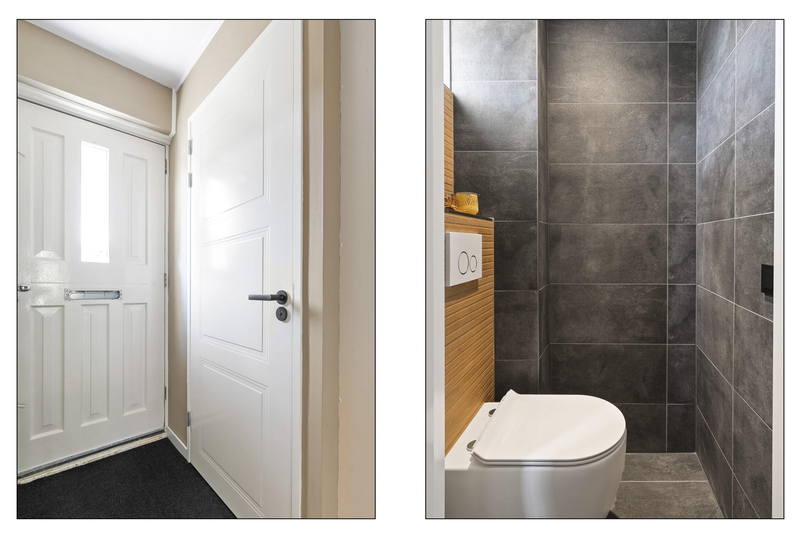 Upon entering, the sleek finish immediately catches the eye. The property features PVC herringbone flooring, a wooden door with a steel look, smooth plastered walls and a new toilet. All this creates a fresh, contemporary look. Behind the house is a sunny garden, accessible via a wide back entrance that is large enough for a motorbike or cargo bike, for example.